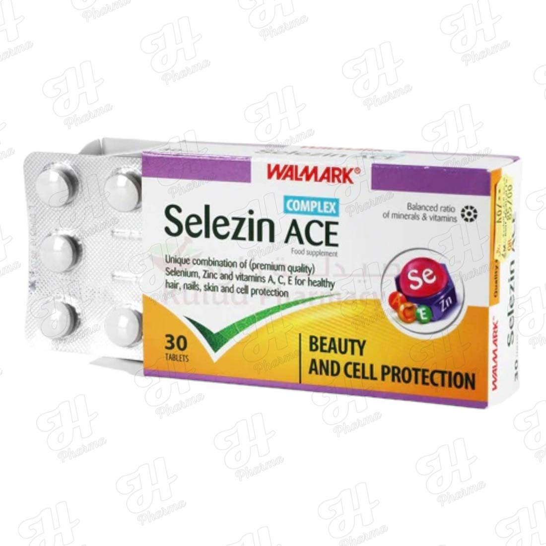 SELEZIN ACE 30TAB هو مكمل غذائي يحتوي على السيلينيوم (في صورة سيلينوميثيونين) وفيتامين E (في صورة أسيتات ألفا توكوفيرل). يساعد السيلينيوم على دعم وظيفة المناعة وصحة الغدة الدرقية، بينما يعتبر فيتامين E أحد مضادات الأكسدة القوية التي تساعد على حماية الخلايا من التلف. يمكن استخدام هذا الملحق لدعم الصحة العامة والرفاهية.